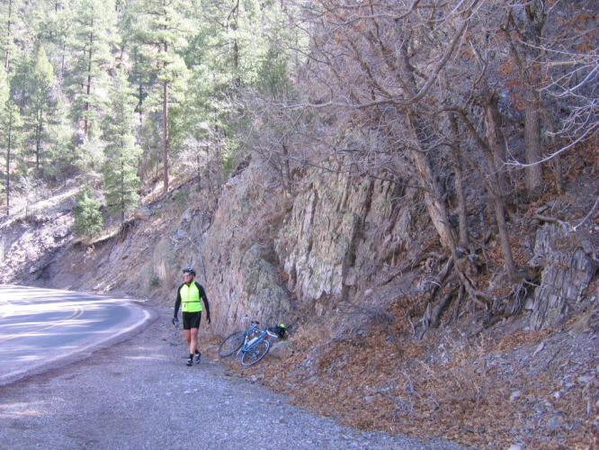 We have been very apprehensive about climbing over the mountains at 8259 feet at Emory Pass ever since we mapped this ride last summer. It’s been said before that worry is a waste of imagination. How true it is because this section was beyond description. Yes, it is hard to do more than 4,000 feet of climbing, all of it at 5,000 feet or higher. I don’t have enough synonyms for beautiful and spectacular to describe the natural beauty in this part of New Mexico so I will post the pictures we took and hope you can appreciate what we saw. The smell of the pine forest and the lack of machine noise (except a slowly passing car once in a while) made this a ride I would do again if I could.